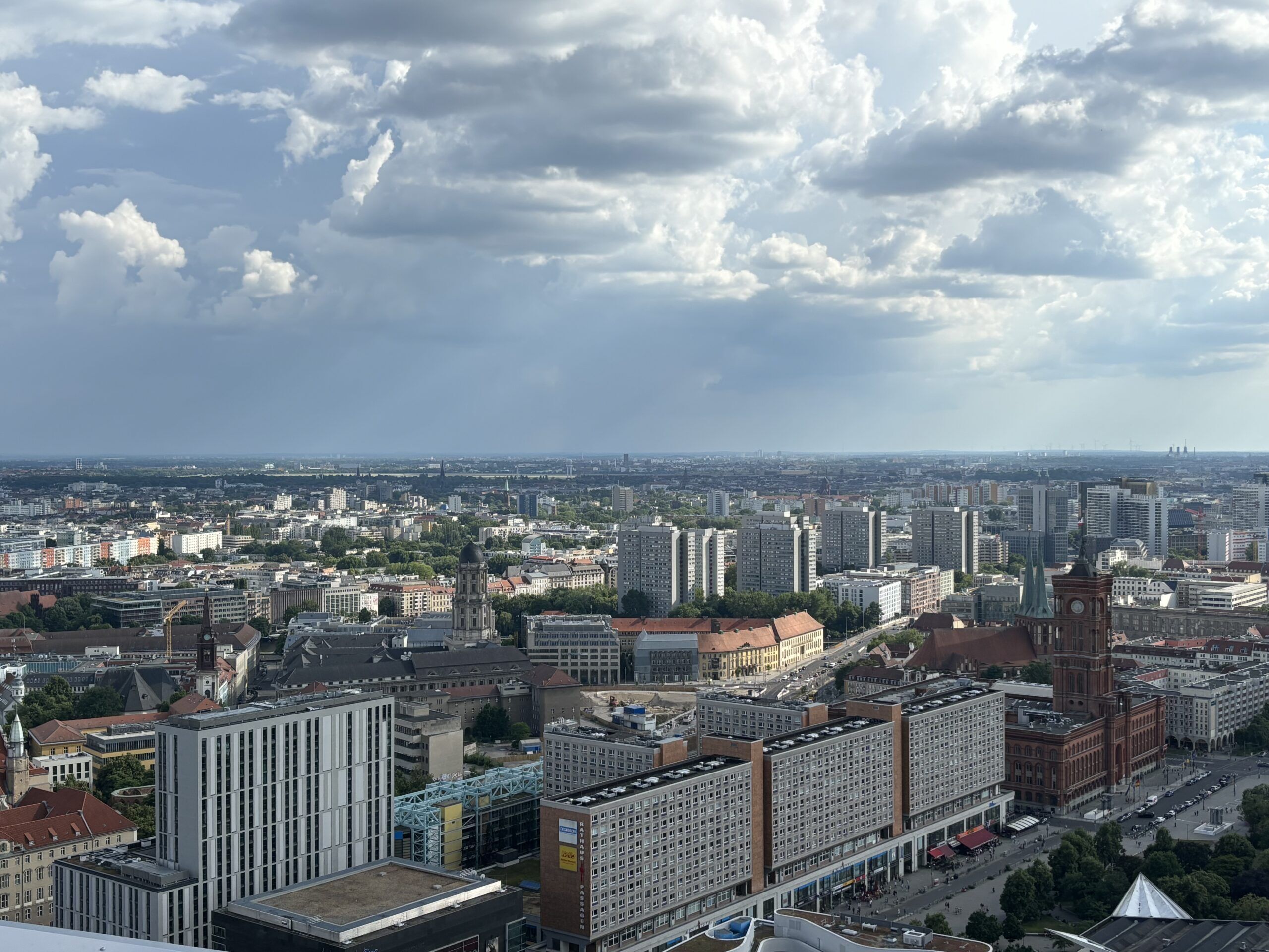 Am Wochenende waren beide Kinder aushäusig. Wir haben die Chance genutzt und taten es ihnen gleich. Für eine Nacht wurde ein hübsches Eckzimmer im Park Inn am Alex bezogen, 30. Etage, mit Blick (auch vom Rooftop!) auf den Strausberger Platz und den Telespargel. Voll knorke! Eben jenen Telespargel aka Fernsehturm haben wir natürlich auch „erklommen“. Beste Rundumsicht auf den Großstadtmoloch. Berlin du kannst so … Hach watt schön!