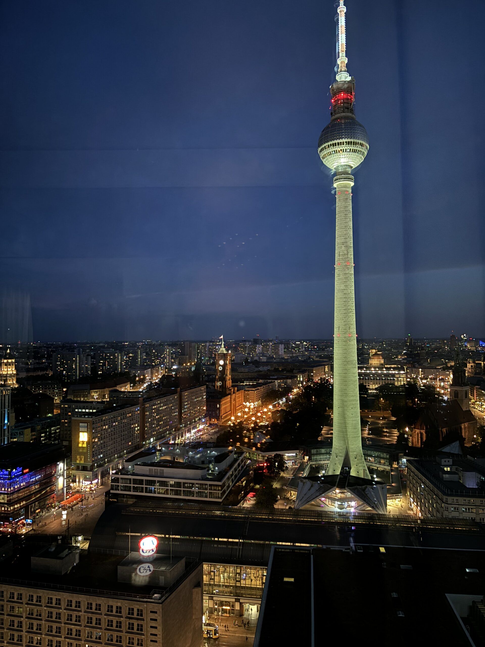 Am Wochenende waren beide Kinder aushäusig. Wir haben die Chance genutzt und taten es ihnen gleich. Für eine Nacht wurde ein hübsches Eckzimmer im Park Inn am Alex bezogen, 30. Etage, mit Blick (auch vom Rooftop!) auf den Strausberger Platz und den Telespargel. Voll knorke! Eben jenen Telespargel aka Fernsehturm haben wir natürlich auch „erklommen“. Beste Rundumsicht auf den Großstadtmoloch. Berlin du kannst so … Hach watt schön!